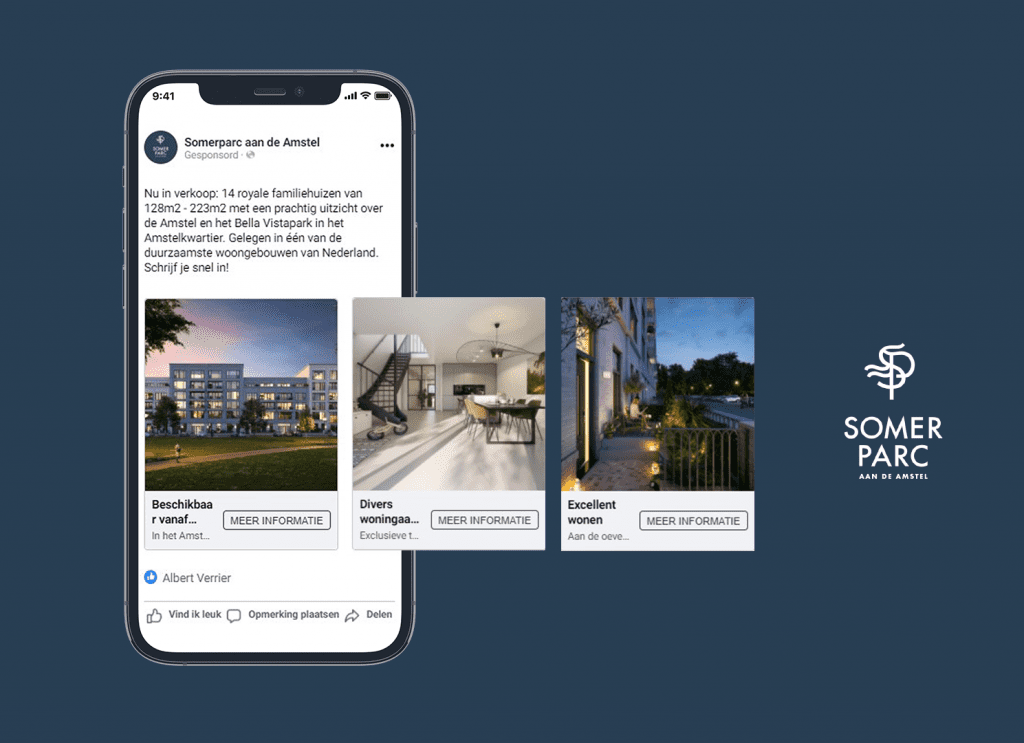 Een project met een prachtige website en mooie AI’s, die goed van pas kwamen tijdens de online campagne. We hebben verschillende campagnes gedraaid voor de diverse woningtypes, omdat er een groot verschil was in prijsranges en de uiteindelijke doelgroep. Op deze manier konden de juiste advertenties op het juiste moment aan de juiste doelgroep getoond worden.